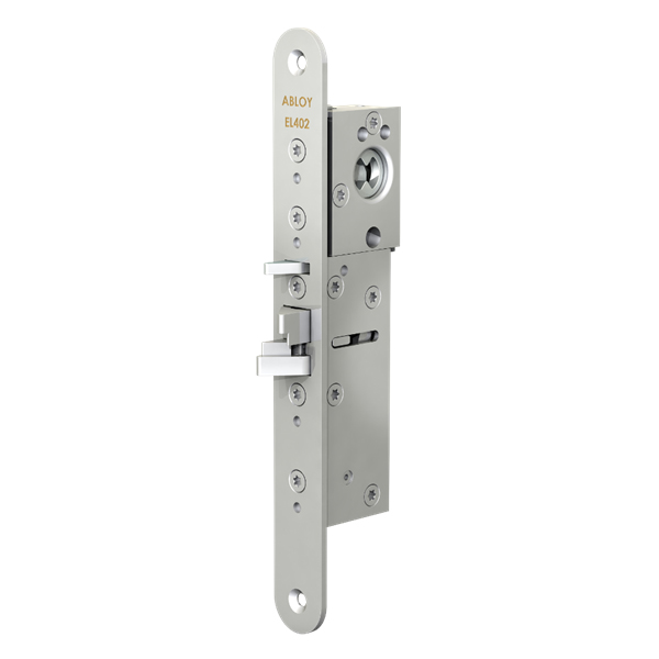 ABLOY EL402 Electric Mortice Door Lock for narrow stile doors. This lock has a unique adjustable backset allowing the mortice lock to be fitted to a wide range of metal doors. The locking bolt has a double action, when the door is closed the bolt is deadlocked, when the door is pulled or pushed open the bolt collapses into the lock case.