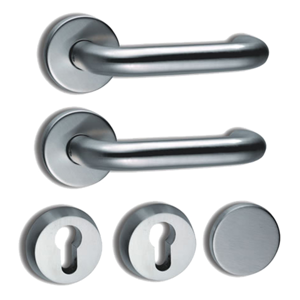 ABLOY 60-0319-SSS Satin Stainless Steel Door Handles for use with ABLOY EL560 and EL561 Mortice Lock Cases. These handles are supplied with matching escutcheons, the handles incorporate a return to door design that allows them to be used on fire doors.