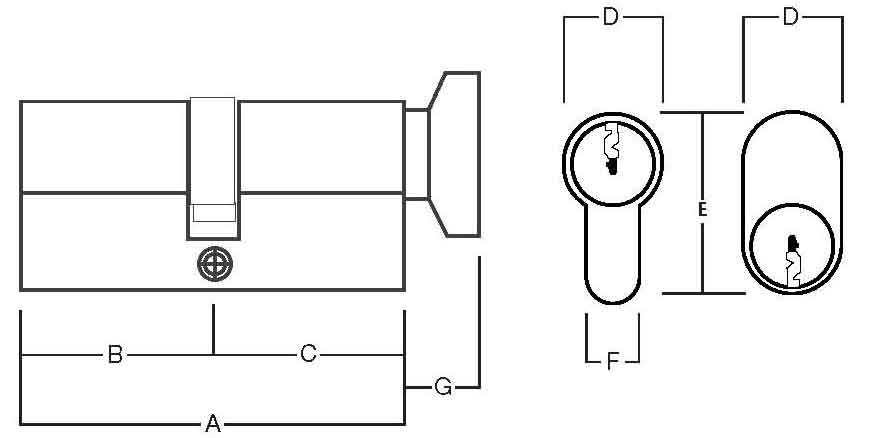 Asec 5 Pin Key and Turn Euro Cylinder 70mm 35/35 Nickel Plated Keyed Alike +£4.00