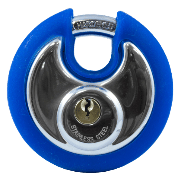 New from Asec Security, a range of round discus padlocks with coloured bumper to the edge for quick and easy lock identification. These padlocks also include the normal security features that are associated with discus padlocks, concealed shackle, dead bolt locking that restricts prying and key withdrawal in the locked position only.