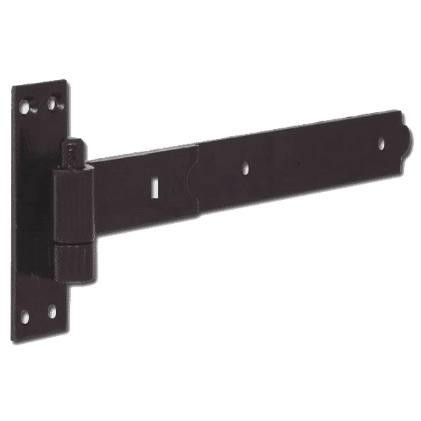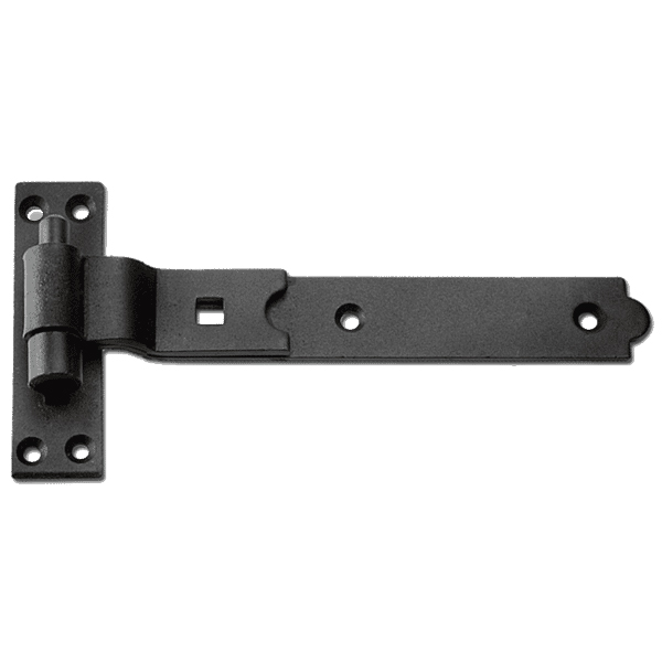 Asec hook and band heavy duty hinges supplied either straight or cranked. These black hinges are supplied in pairs for each side of a door and can be used with large external gates and garage doors. Cranked hinges keep the door flush with the post when in the closed position, whilst straight hook and band hinges allow the gate or door to be proud of the post.