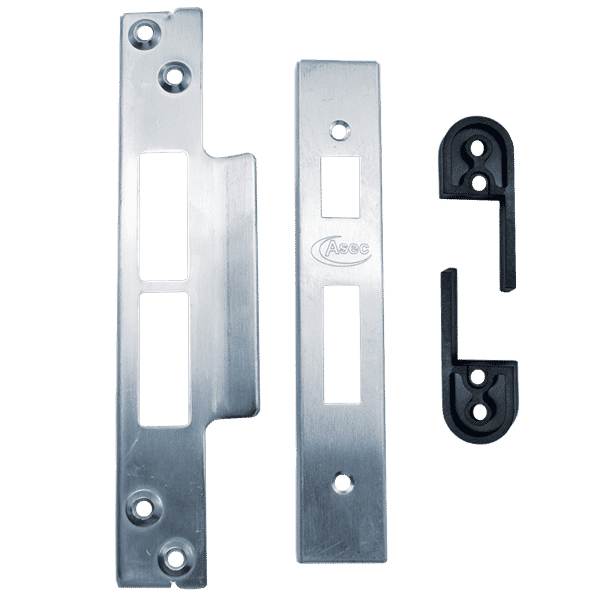Mortice Rebate Kits are used with double over lapping doors to extend the lock and keep into the over lapping rebate part of the double doors. These Asec Rebate kits are designed for the Asec Sash lock Cases on come in a Satin Chrome or Polished Brass finish and a size of 13mm