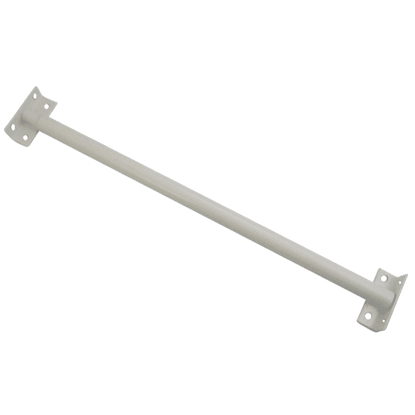 Security bars for windows. White round extending security bar from Asec with right angle fitting brackets for easy fixing. Constructed of 2 parts, 14.5mm inner solid bar and 19mm outer bar, allowing security bars to extend to required length. These high security window bars are ideal for commercial properties.