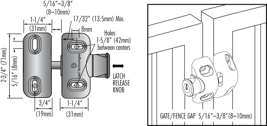 D&D Technologies offer this unique Latch Bolt that incorporates a magnetic latch that is automatically engaged with the keep when the door is closed. This lockable latch can then lock the latch in the closed position with the use of a key. The Magnalatch Side Pull can be fitted to metal or wooden gates and once fitted it full adjustable both horizontally and vertically which allows for any movements in the gates. Made from Stainless Steel and Strong moulded polymer plastic, this gate latch is also rust resistant.
