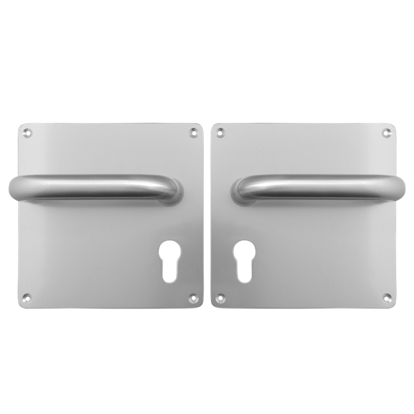 Dortrend Door Furniture Handle on Large Plate 20mm round return to door handle, 10g aluminium backplate