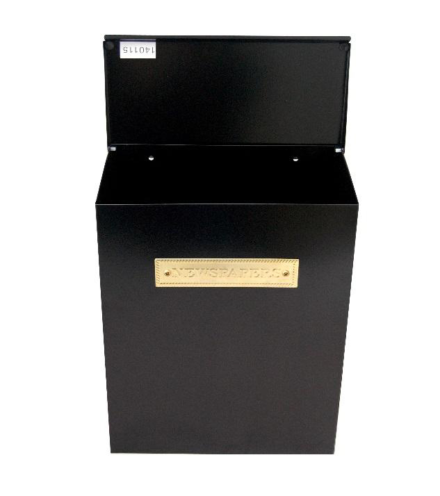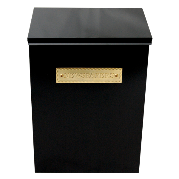 Large newspaper box with lid that will easy house even the biggest of Sunday newspapers and magazines.