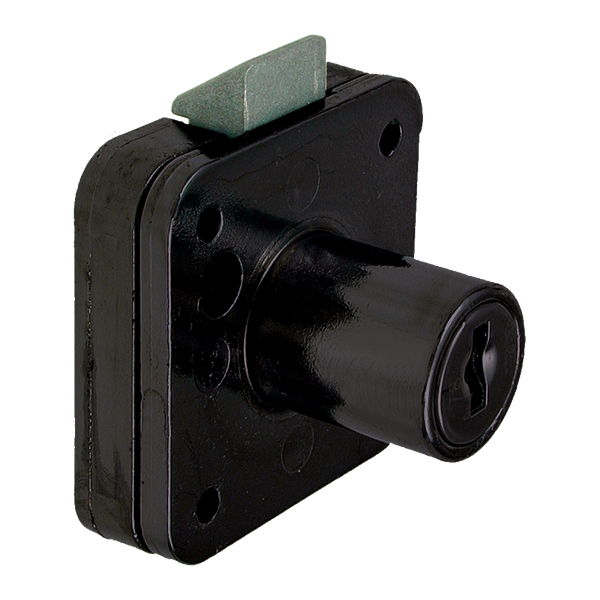 Lowe and Fletcher cylinder drawer and till lock in a black finish that is suitable for wooden furniture. The L&F 5883 drawer lock is operated by cylinder lock with a spring bolt slam action, that automatically locks when drawer is closed, key is then used to unlock.
