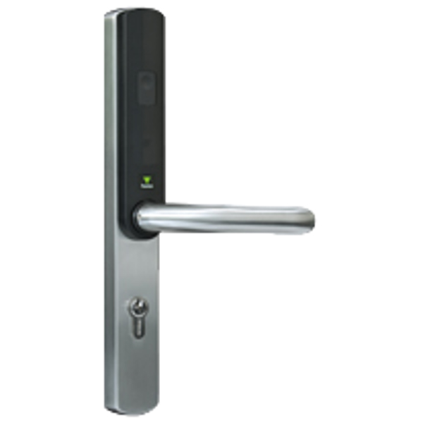 Paxton 901 Wireless slim line door lock with battery power. The Paxlock can be supplied with or without key override option, this is achieved by euro cylinder (not supplied), the slimline door lock is available in two sizes, with centres of 48mm or 72mm. These door lock are controlled via the central Paxton PC via a wireless connection, with battery power these access control door locks can be used on buildings with now network access or mains power.