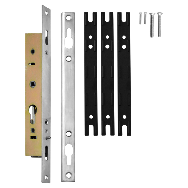 Patio Door Lock from SCHLEGEL, the BHD Euro Patio Door Lock is operated by a Euro Cylinder and thanks to supplied spacers has 3 options for backset of 8.5mm, 22.5mm, 25mm and 27mm