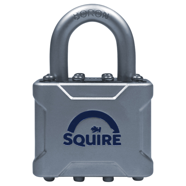 Squire Vulcan P4 Padlocks with a strong Boron open shackle. These Squire Vulcan padlocks come in three sizes, 44mm, 48mm and 55mm and each padlock is supplied with 2 keys. The Squire P4 offers great strengths and also looks with an attractive satin chrome body cover stamped with the Squire logo.