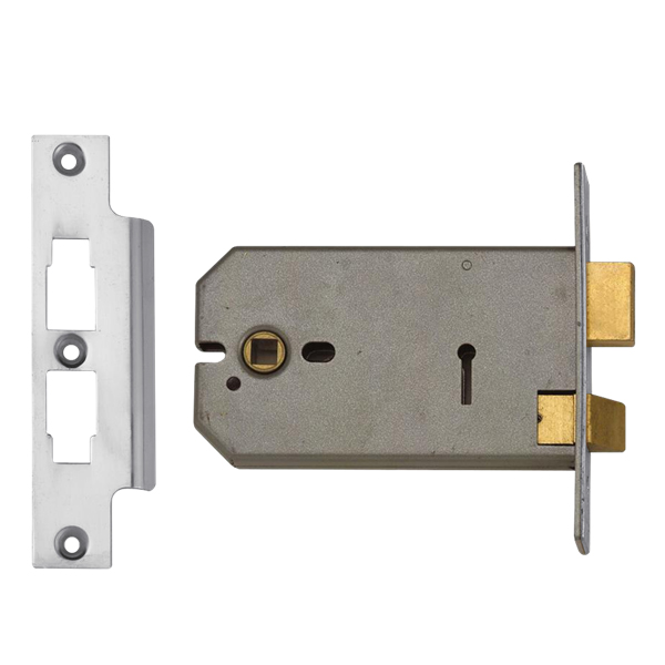 Union 2077 3 Lever Horizontal lock, for timber doors hinged on the left or right . Supplied keys suitable for use on doors up to 54mm thick.
