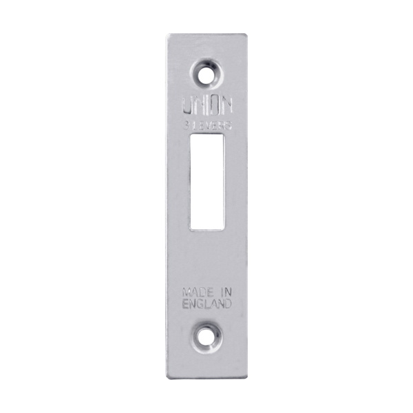 Replacement Union 2157 3 Lever Deadlock forend plates, these are the plates that sit over the lock when fitted into the door. Replacement forend plates are available in a brass or satin chrome finish and come with countersunk holes for easy and neat fitting.