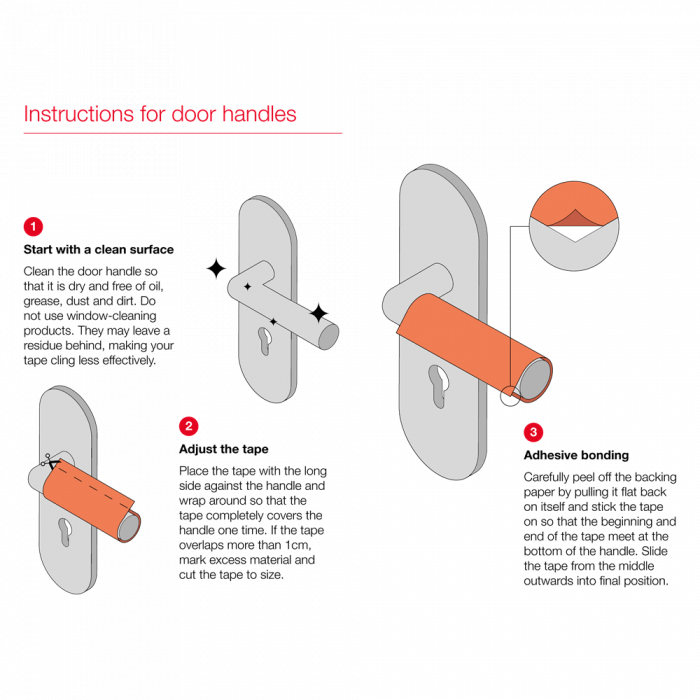 New Anti Viral and Anti Bacterial Tape for Door Handles from Union. This self adhesive tape can be fitted to most type of door handles and reduces the transmission of bacteria and germs via door handles